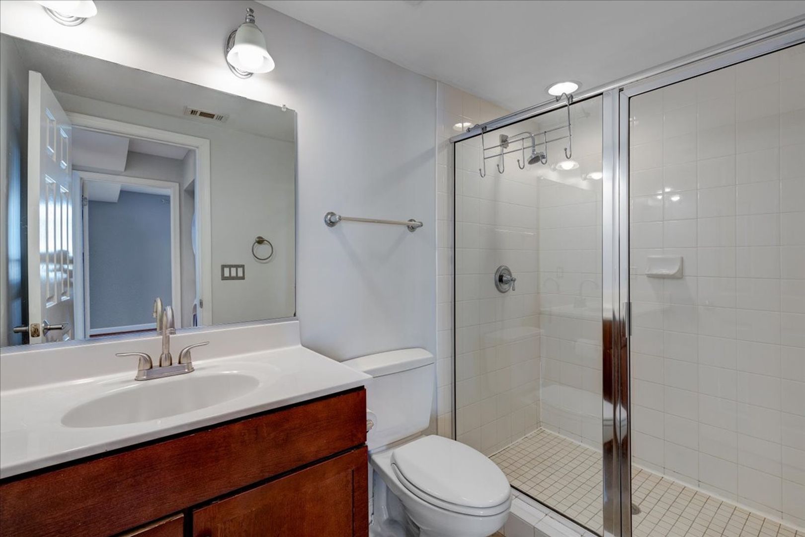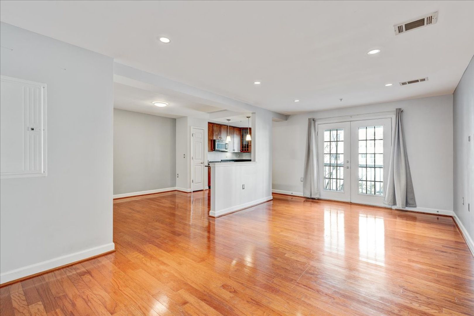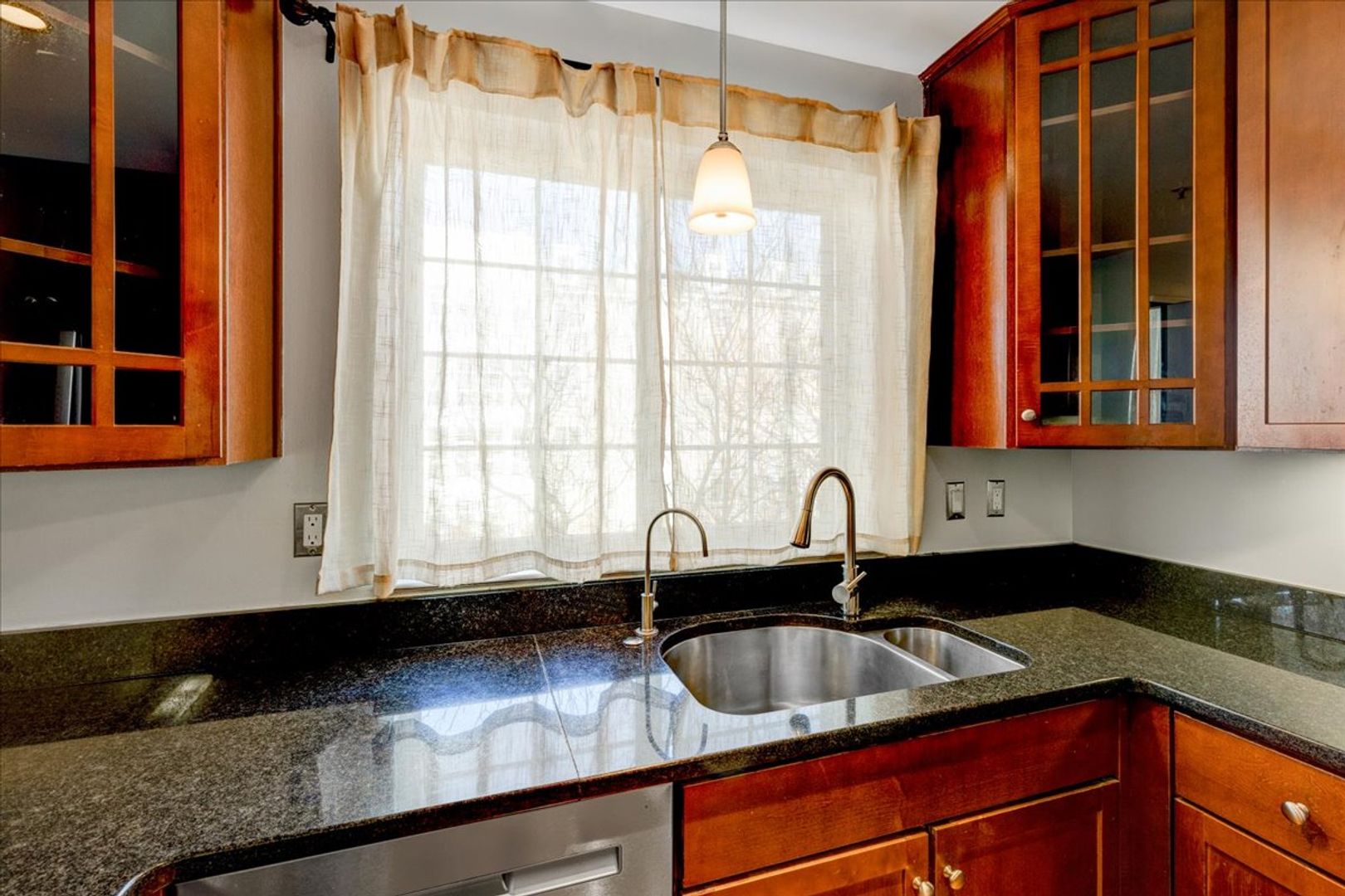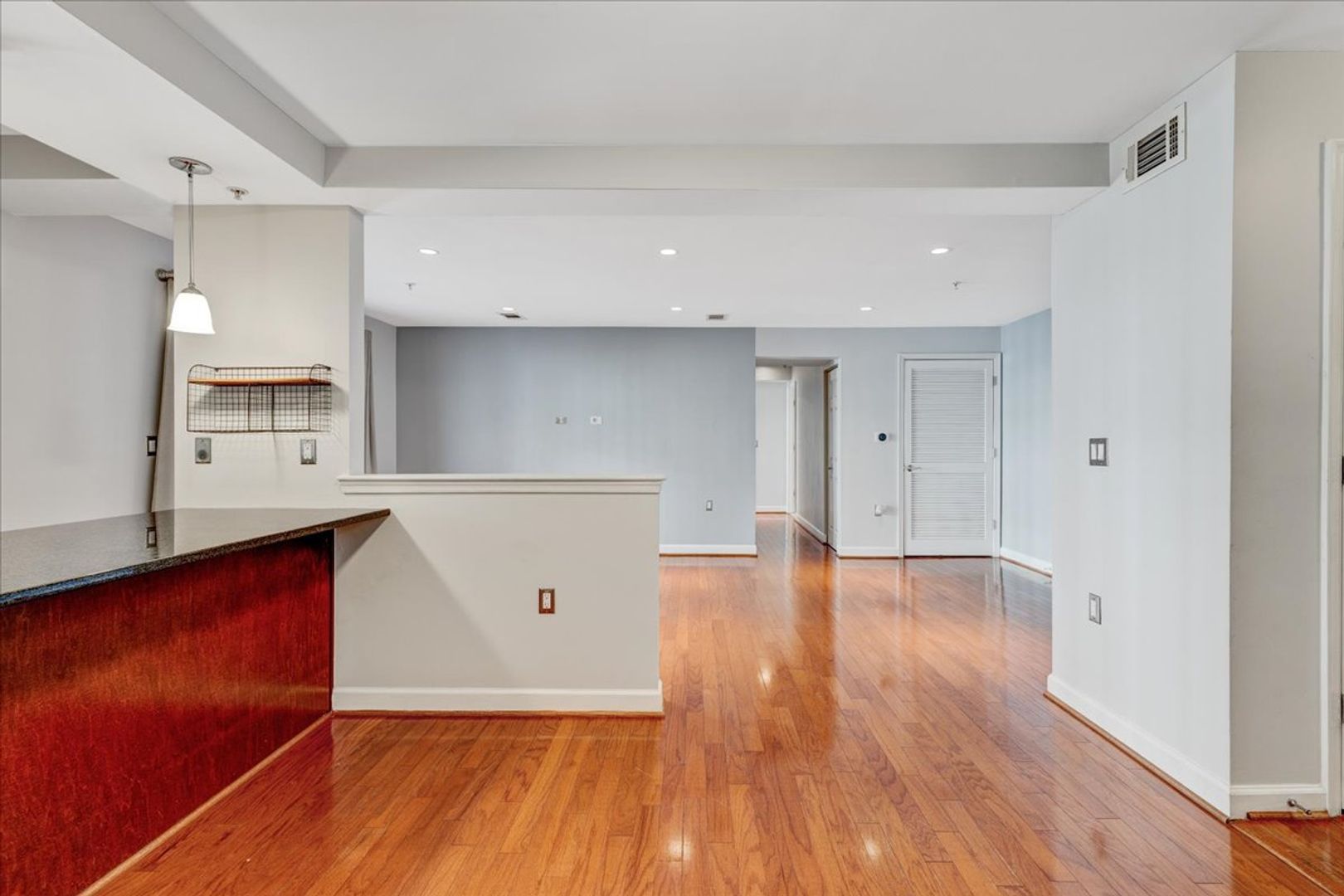 Situated in the charming West Village of Shirlington, this upper-level unit features stainless steel appliances, granite countertops, and chic hardwood flooring throughout. The dining area off the kitchen opens to a spacious balcony from the living room—perfect for relaxing or entertaining.
